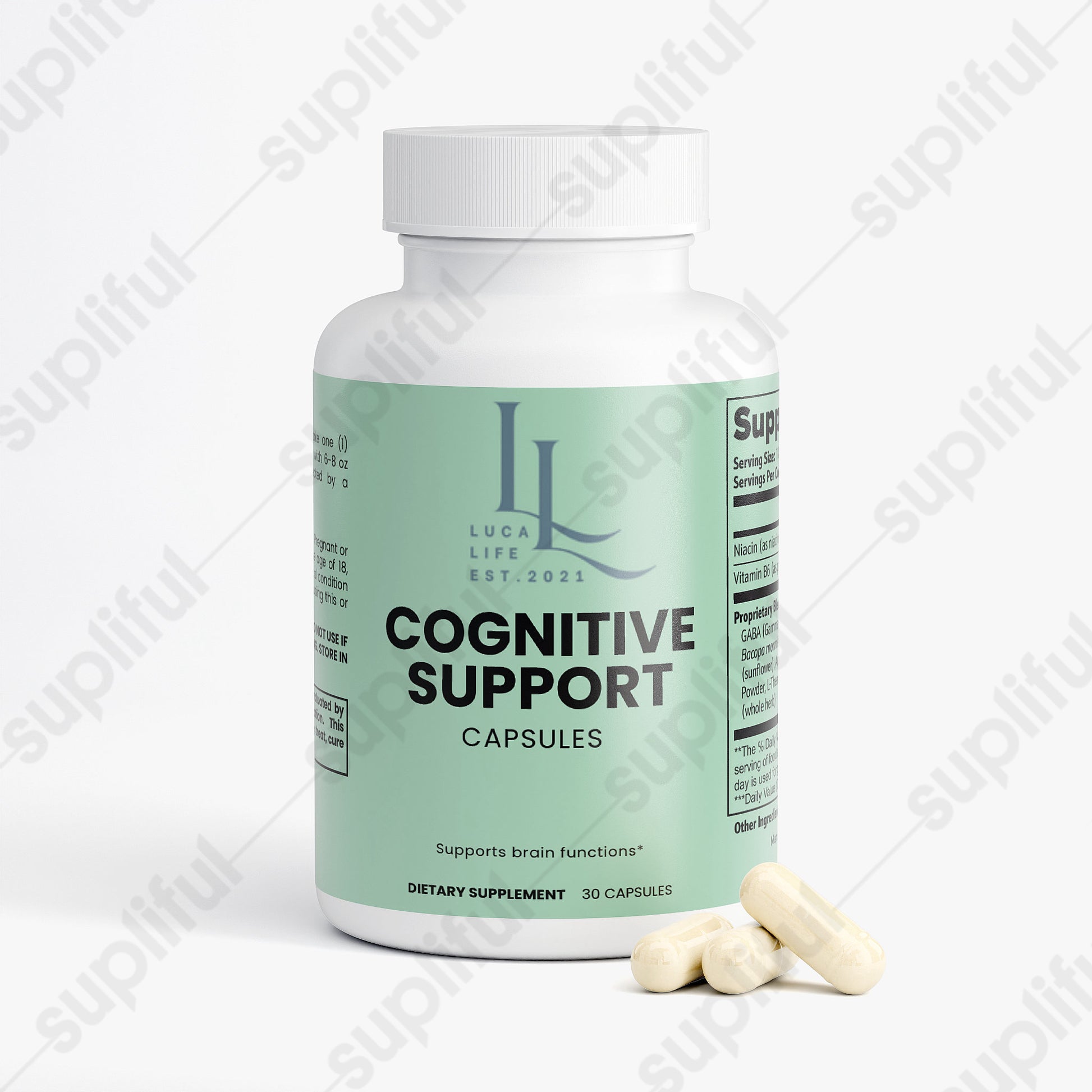 This cognitive enhancement supplement is designed to support brain functions through a blend of natural compounds. It combines Niacin, Vitamin B6, GABA, L-Tyrosine, and other key ingredients like Bacopa monnieri and Huperzine A, aimed at promoting mental clarity, focus, and cognitive performance. Ideal for daily use, this supplement is dedicated to supporting your brain's health and enhancing cognitive functions using high-quality, natural ingredients, without artificial additives.*