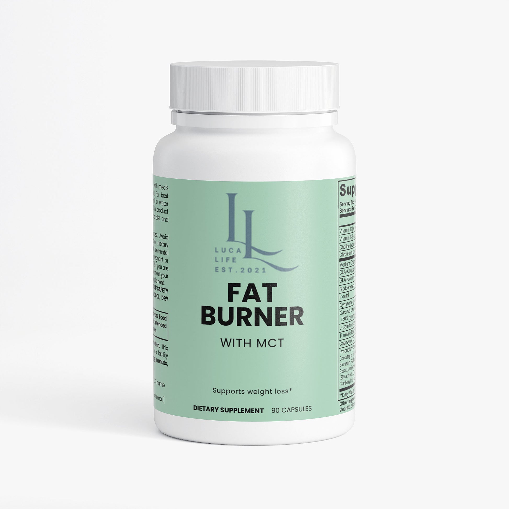 Fat Burner with MCT combines Vitamin C, Vitamin B6, Choline, Chromium, L-Carnitine, and medium-chain triglycerides (MCT) to deliver a healthy approach to facilitating metabolic performance and consequent weight loss.