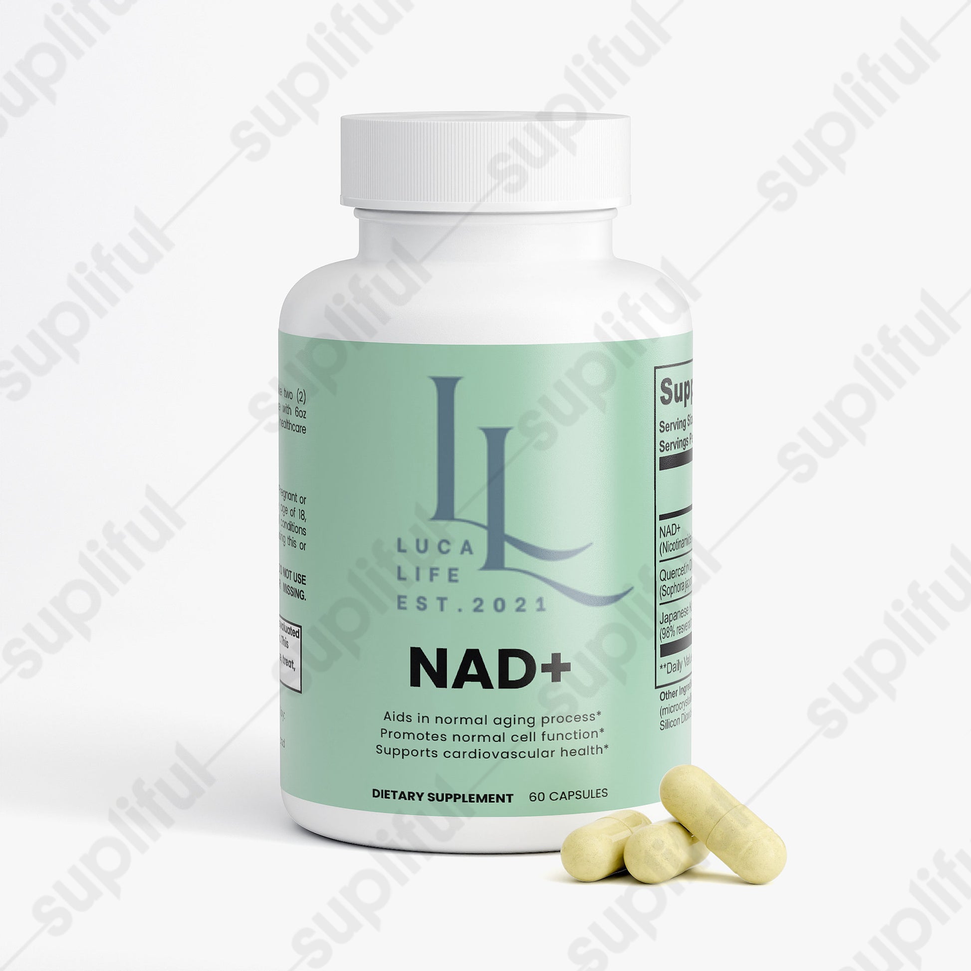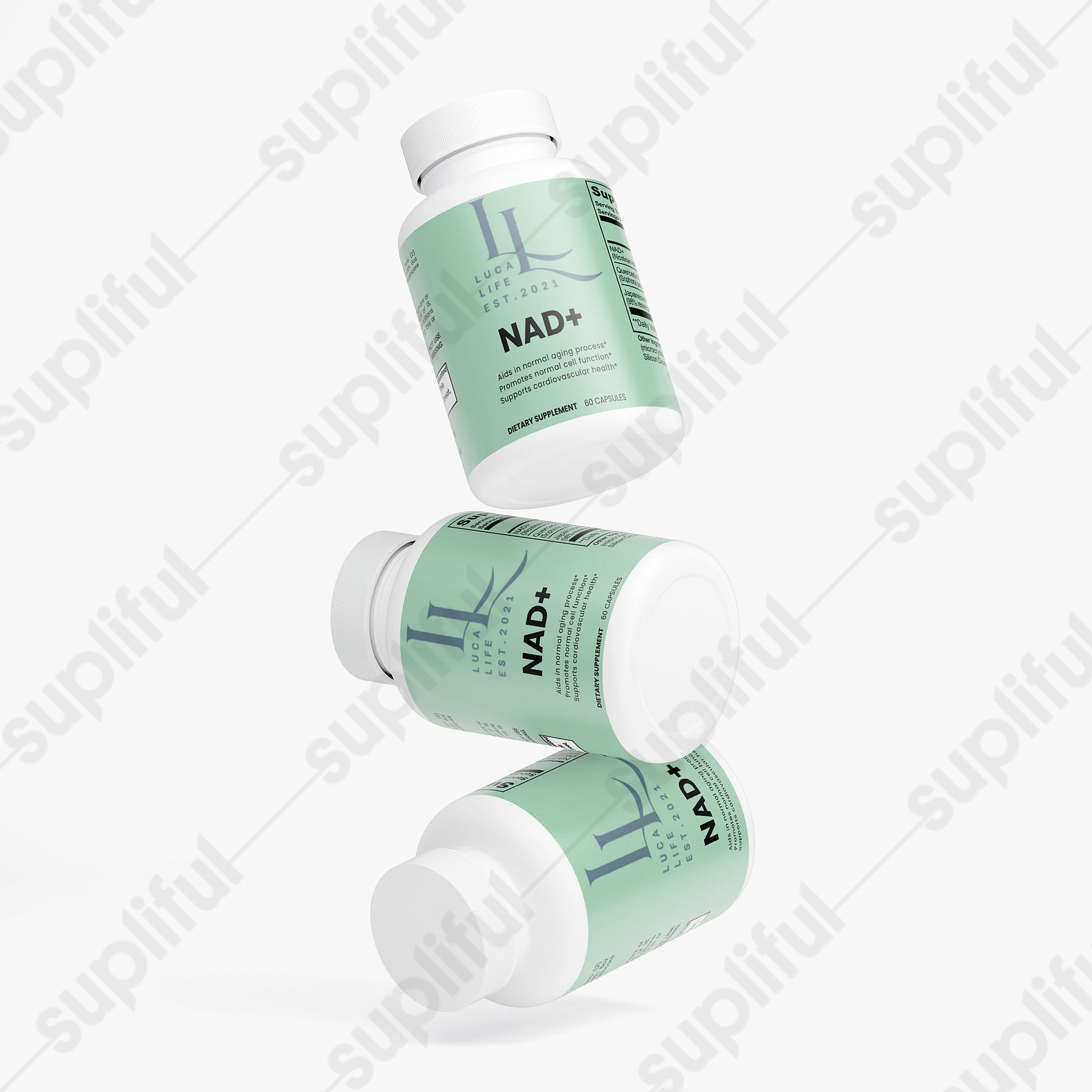 Ingredients: NAD+ (Nicotinamide Adenine Dinucleotide) (500 mg), Quercetin Dihydrate Extract (Sophora japonica) (whole flower bud) (250 mg), Japanese Knotweed Extract (98% Resveratrol) (Polygonum cuspidatum) (root) (150 mg), HPMC (vegetable capsule), Microcrystalline Cellulose (MCC), Brown Rice Flour, Olive Oil, Silicon Dioxide, Magnesium Stearate.